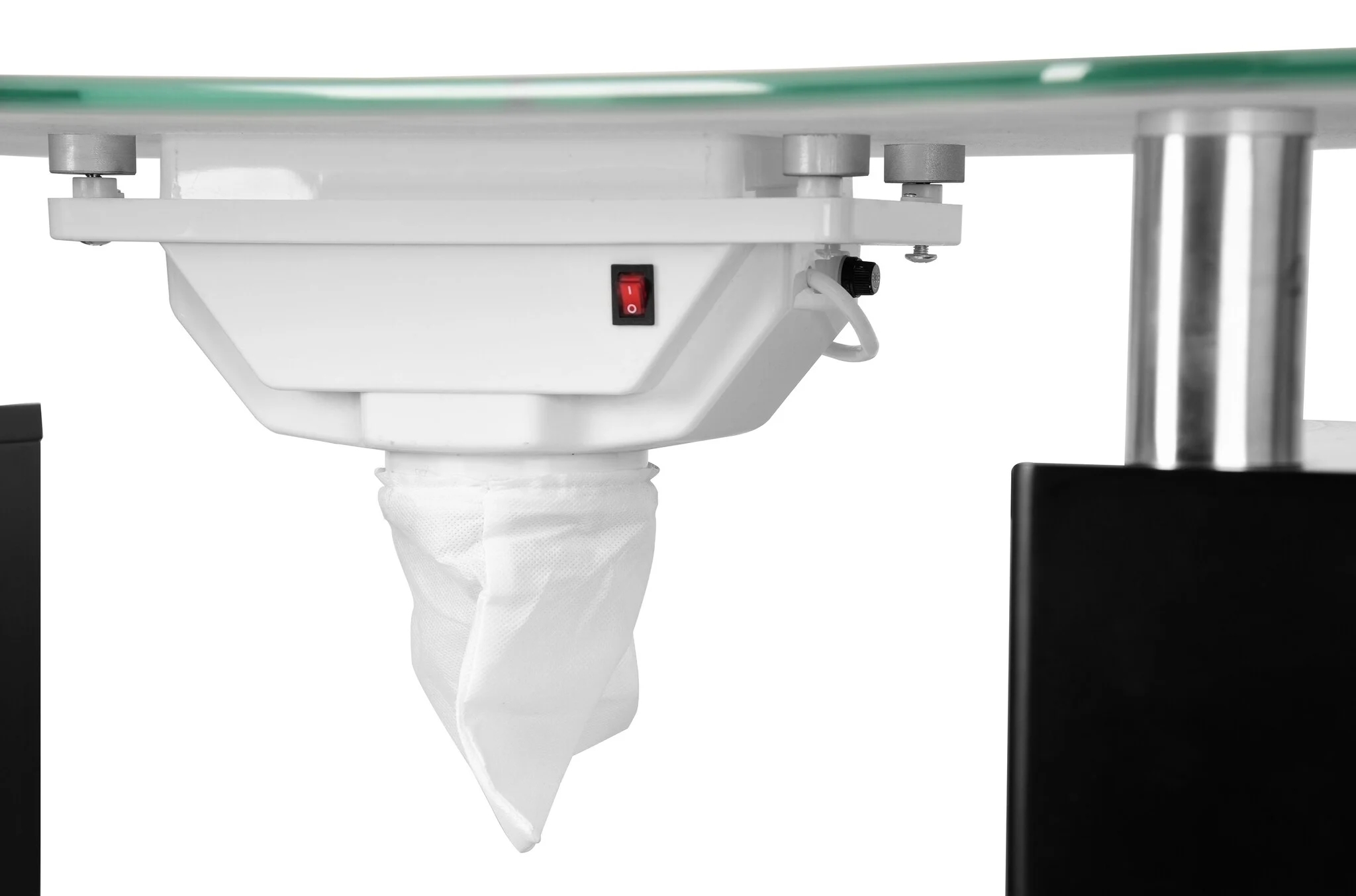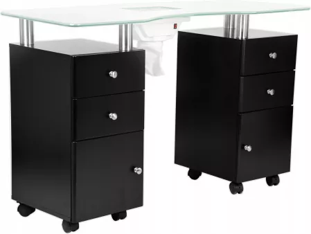 1. Manicuretafel met ingebouwde afzuiging en glasplaat.